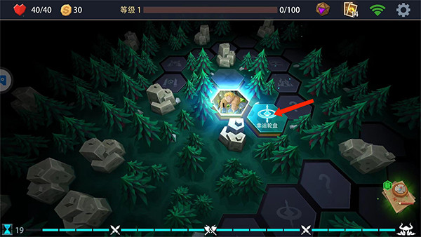 5、有亮光的方格就说明可以点击,选择【幸运轮盘】图标,