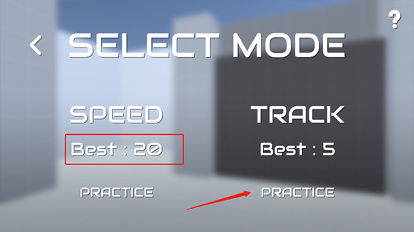2、这里是模式的选择,左边的speed是速度,下方是最好成绩,右边track是跟踪下面是跟踪的个数,点击最下方的practice开始游戏;