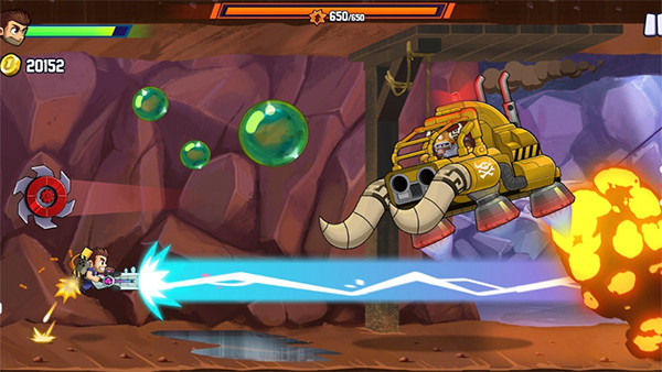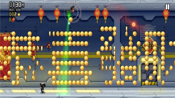 游戏中的Jetpack动力不是传统的燃料动力,你要利用不断发射的子弹来作为上升飞行的动力,玩家要在其中用手指按触屏幕上的任何一个可触发控制的位置灵活的进行操作,灵活的操作在游戏中是非常重要的是,整个逃亡路上你不仅仅要避开各种不同的障碍还要消灭敌人。