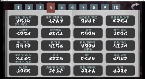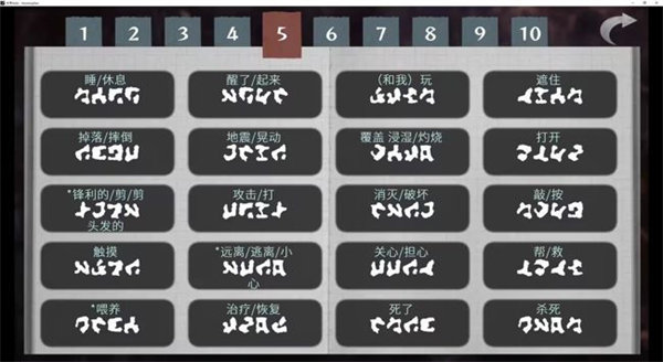 游戏中玩家需理解异世界的神秘文字,通过观察角色动作与指向物件推测含义,玩法新颖。