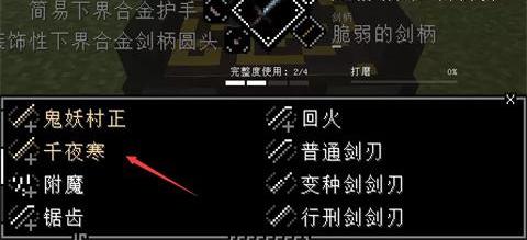 1、任务找千冷之夜卷轴的配方,合成后放到加工台正上方,然后用武士刀升级成千夜寒。