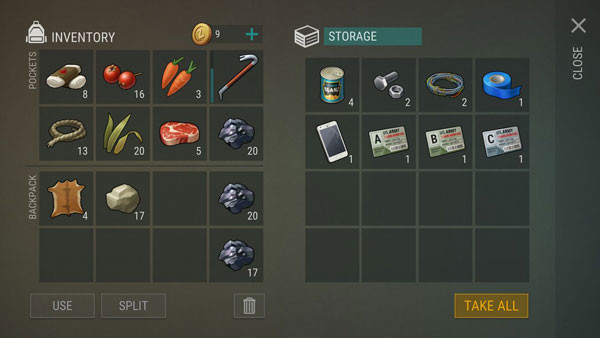 吃的东西喝的东西,我们还是要留一部分在我们自己的背包里,我们要随时查看我们自己的状态,状态不好了的话,你要记得及时的使用我们背包里的物资来进行补充。