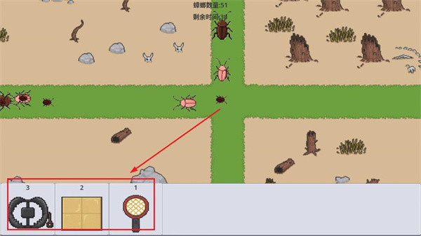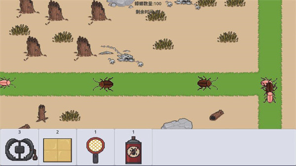 4、使用下方的道具栏的道具,拖到游戏内,消灭蟑螂。