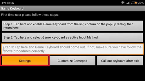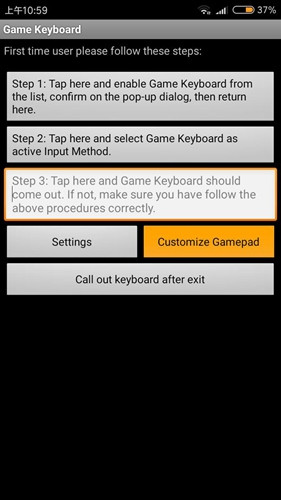第五步:然后点击手机上的返回按钮,返回Game Keyboard的首页,点击右下角的Customize Gamepad。