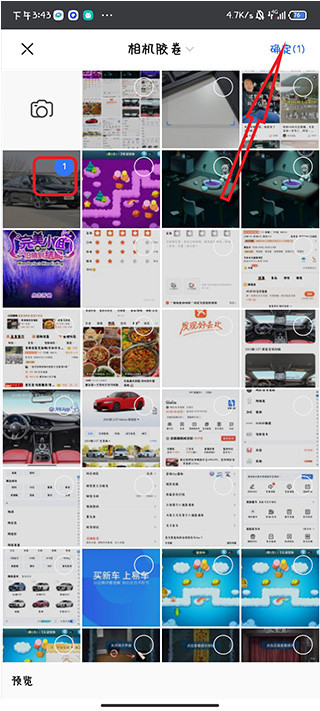 3、进入本地相册,选择需要识别的汽车照片,点击屏幕右上角的“确定”按钮;