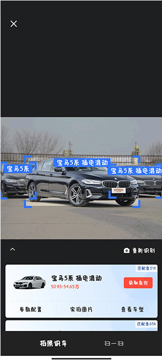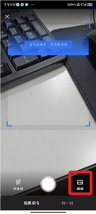 2、进入扫描界面,将手机摄像头对准汽车即可出结果,或者点击屏幕下方的“相册”按钮;
