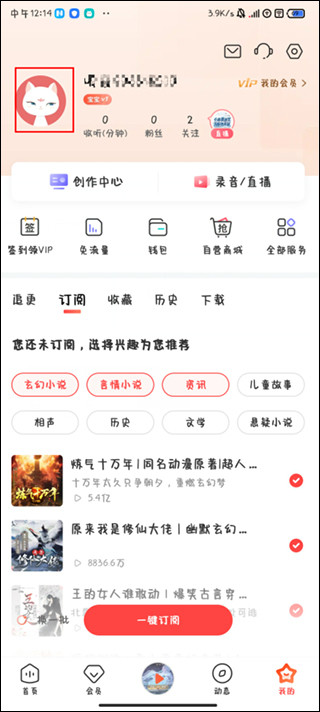 1、打开喜马拉雅app,进入到我的界面,点击页面上方的“头像”图标按钮;