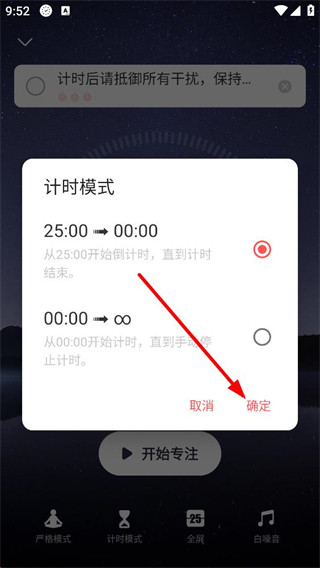 3、进入计时模式设置界面,可选择从倒计时或从正计时的模式,选定后点击确定按钮,应用该计时模式。