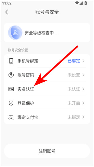 4、在账号与安全页面,点击实名认证选项,进入实名认证页面。