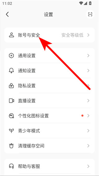 3、在设置界面中,点击账号与安全选项,进入账号与安全页面。