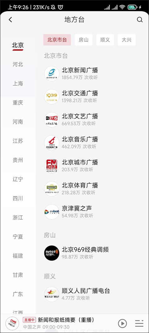 不知道小伙伴们有没有和小编一样,喜欢听听其他地区的电台,小编就喜欢听重庆那边的一个音乐电台节目,那我们不在想听电台的区域我们该怎么办呢?云听为了解决大家的烦恼,通过网络电台的优势让大家可以收听其他地区的电台,那么现在就由小编带来大家看看如何收听其他地方的电台吧。