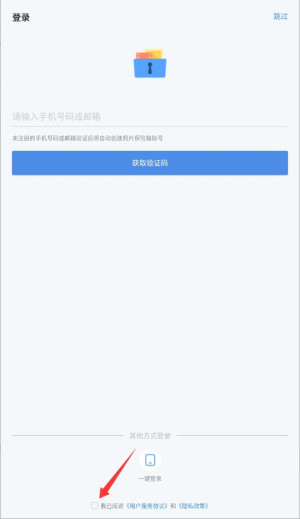 3、在登录页面勾选同意用户协议与隐私政策条款,进入身份验证步骤。
