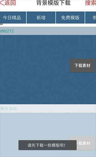 3、制作视频总少不了选择一个合适的模板吧。进去板块专区,从北京模板下载、背景模板管理、前景模板下载、前景模板管理、GIF下载等等栏目中选择下载你所需要的视频素材。