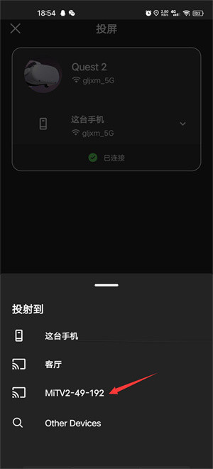 2、打开手机meta horizon软件,连接上你的头盔,连接成功后,点右上角投屏。