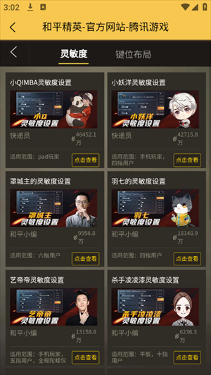 4、可浏览专业玩家分享的灵敏度参数和按键布局方案,参考学习以提升操作水平。