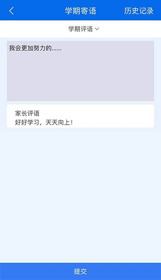 学期末分别登录家长账号点击【学期寄语】,录入学期评语。