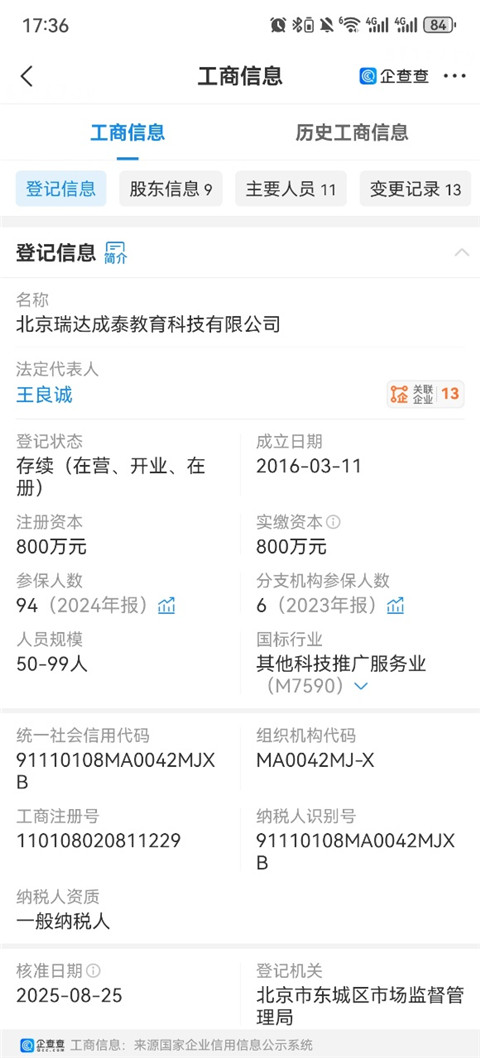 2、在这里即可显示相应企业营业执照信息。