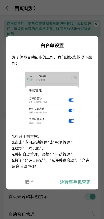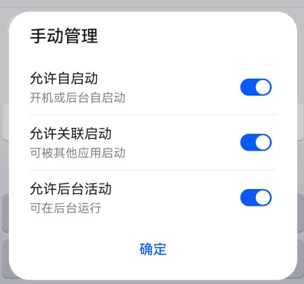5、继续根据提示设置白名单,需要关闭自动管理,都调整到手动管理。部分机型无法跳转白名单设置的,可以前往手机管家或系统设置中寻找。
