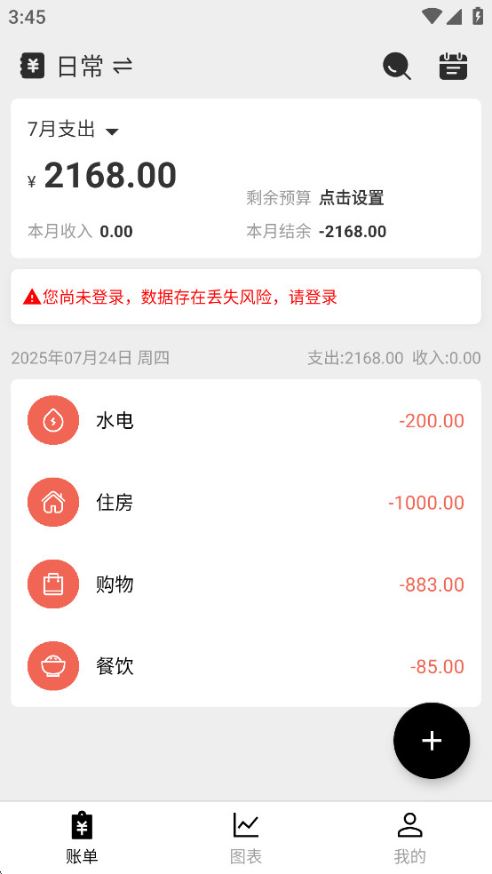 3、消费趋势分析:通过直观图表快速查看收支变化和分类消费排行,帮助理财决策。